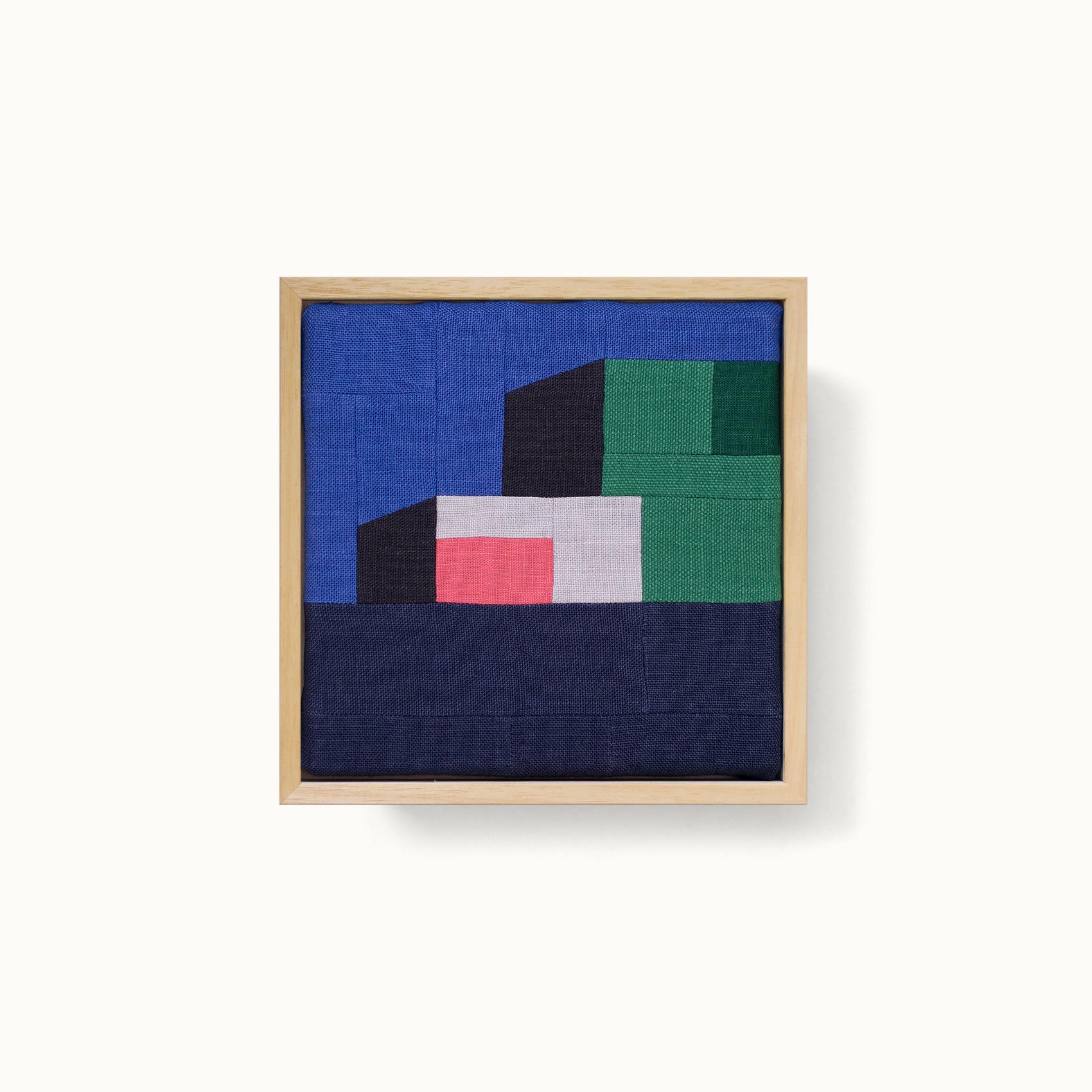 dans une approche artisanale proche du patchwork, jacques compose et assemble des pièces de lin, pour donner vie à des maisons et des paysages aux architectures abstraites et minimales.